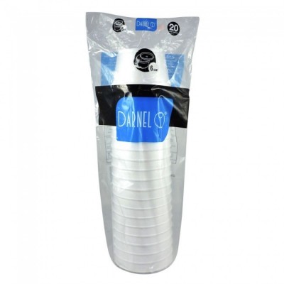 Conjunto de 20 copos térmicos de 180ml 100% recicláveis com tampa, ideal para festas ou eventos ao ar livre, piqueniques, etc. Além de preservar as bebidas frescas por mais tempo este produto é amigo do ambiente, sendo produzido com materiais 100% recicláveis, composto por 10% de material e 90% de ar.Custo unitário: 0,14€.