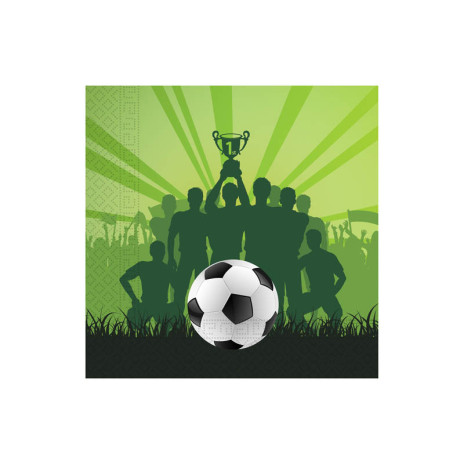 Conjunto de 20 guardanapos de folha dupla de futebol para decorar a tua festa de aniversário com o mesmo tema.