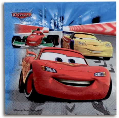 Embalagem de 20 guardanapos do Cars da Disney Pixar, com o Faísca McQueen e outros carros, para a tua festa de aniversário do teu tema preferido.