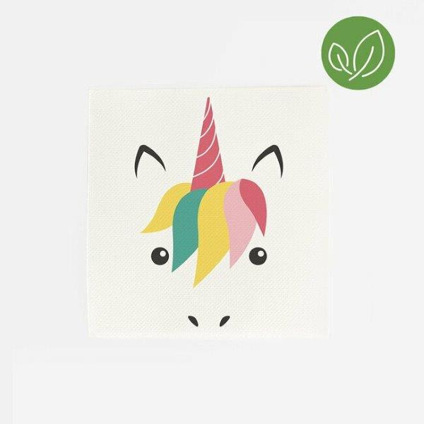 Embalagem de 20 guardanapos pequenos (cocktail) coleção Mini Unicórnio, para a tua festa de aniversário com o teu tema preferido.