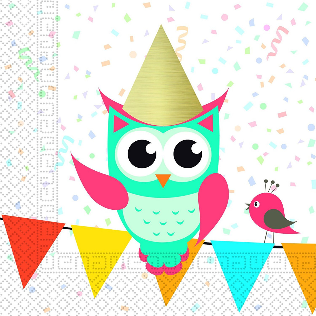Guardanapos de folha dupla para as festas de aniversário com o tema Corujinhas.