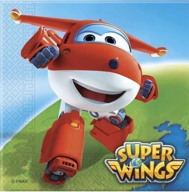 Conjunto de 20 guardanapos de papel para festas de aniversário da nova série Super WingsDimensões: 33x33cm.