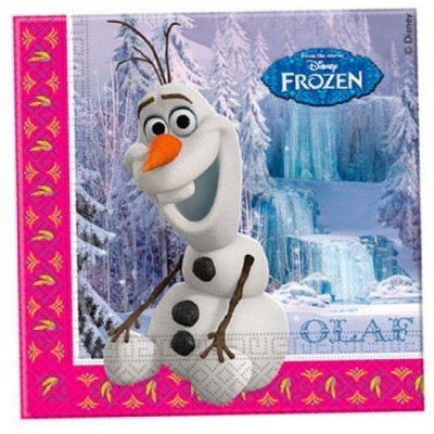 Guardanapos de papel para a decoração das festas de aniversário do filme Frozen com as irmãs Elsa e Anna e o boneco de neve Olaf