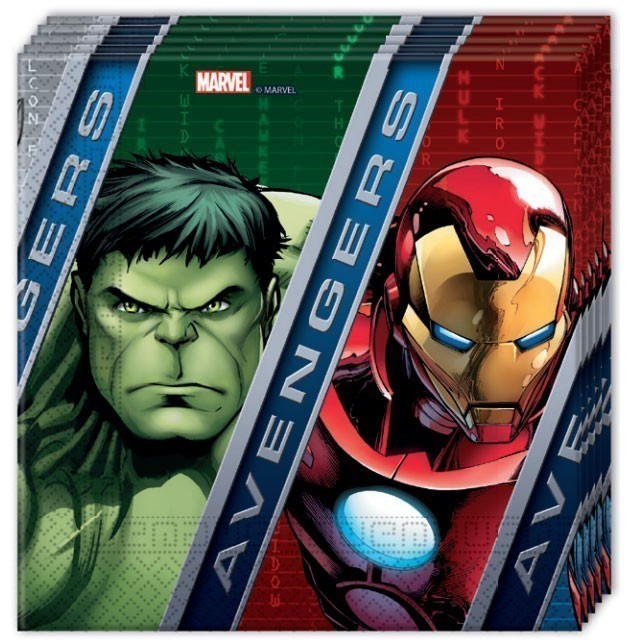 Guardanapos de folha dupla para as festas de aniversário com o tema Avengers Power Marvel.Medidas aproximadas: 33 x 3 3 cm