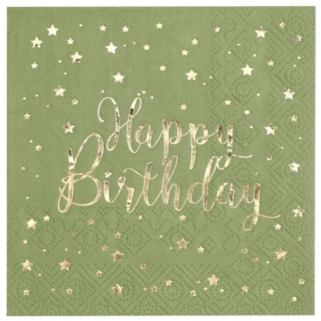 20 Guardanapos Happy Birthday Verde Oliva 25cm