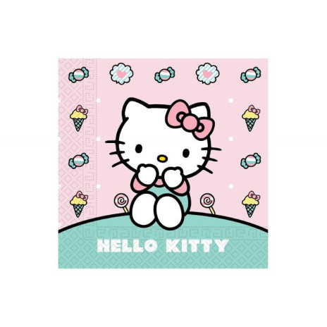 Conjunto de 20 guardanapos de folha dupla da Hello Kitty para decorar a tua festa de aniversário com o mesmo tema.