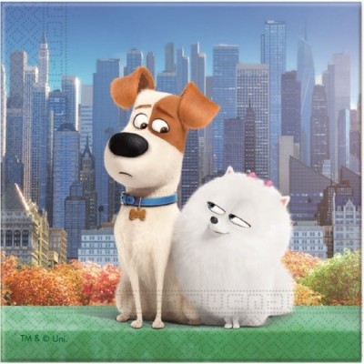 Conjunto de 20 guardanapos de 33cm dos incriveis animais do filme Secret Life of Pets - A Vida Secreta dos Nossos Bichos.