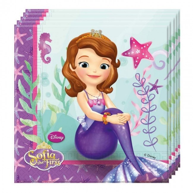 Distribui um destes lindissimos guardanapos da Princesa Sofia a cada convidado da tua festa de aniversário e verás que a decoração da tua festa fica outra. Embalagem com 20 guardanapos de 33x33cm.