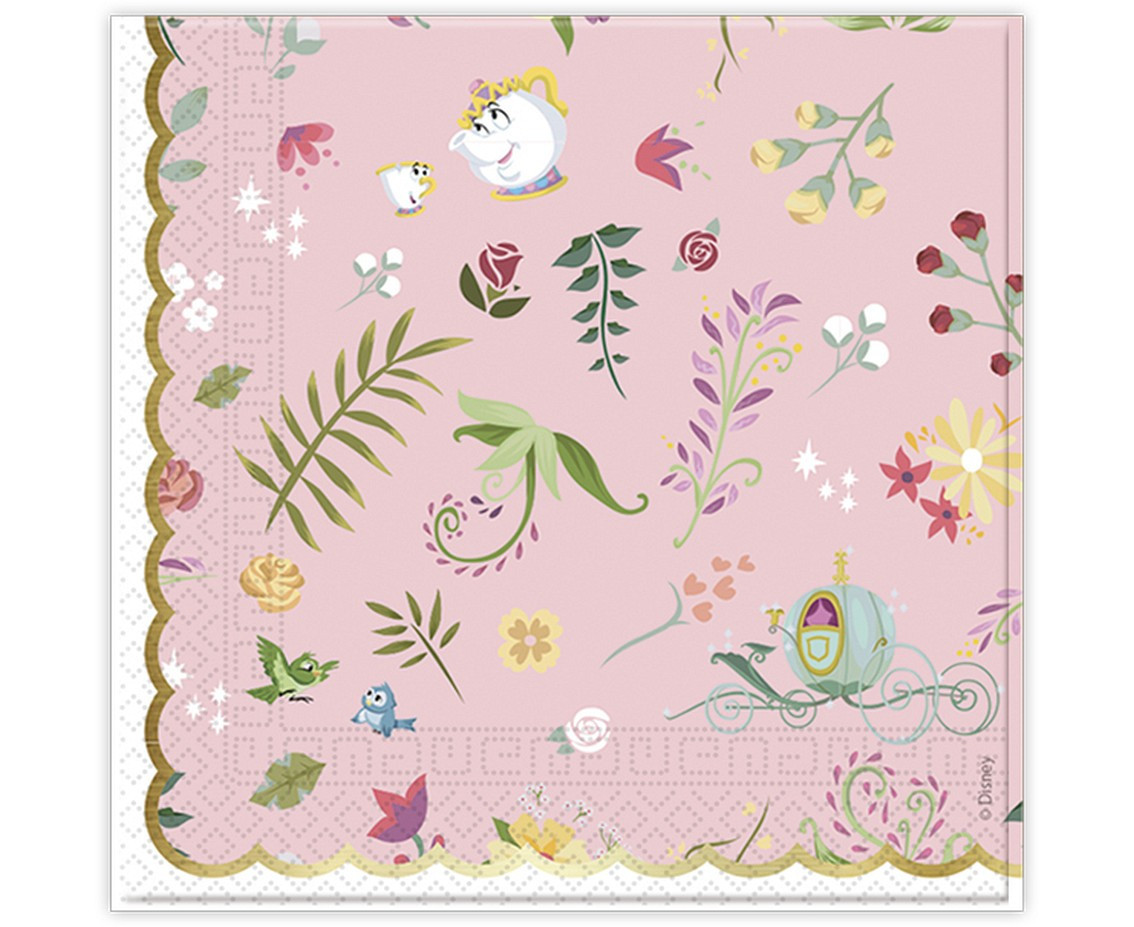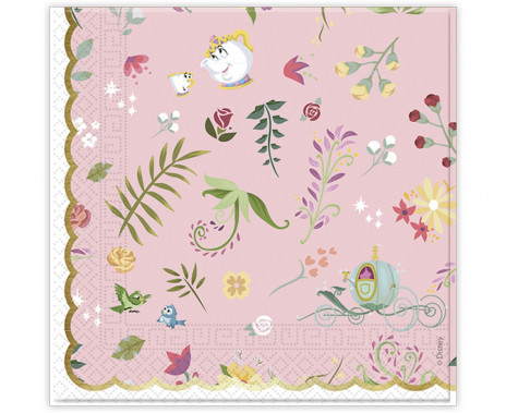 Pack de 20 guardanapos com as dimensões de 33x33cm para uma festa de aniversário original e divertida com a fantástica coleção True Princess das Princesas.