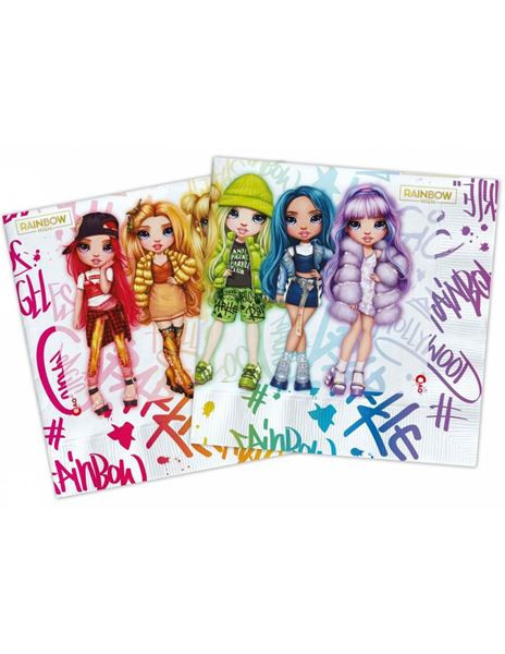 Conjunto de 20 guardanapos das Rainbow High para decorar a tua festa de aniversário com o mesmo tema.