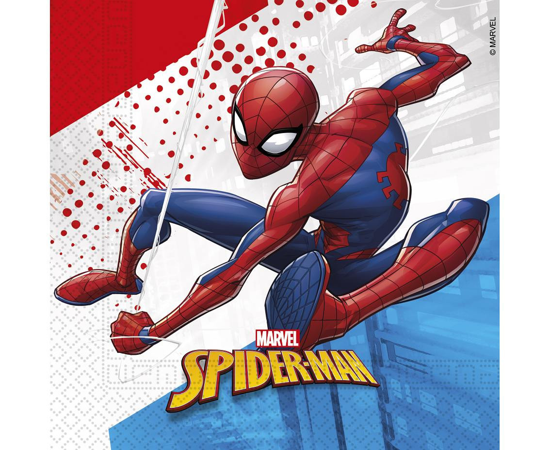Embalagem de 20 guardanapos de papel biodegradável do Homem Aranha, coleção Superhero com as medidas de 33x33cm. Ideal para a tua festa de aniversário.