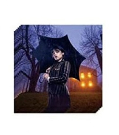 Conjunto de 20 guardanapos com o tema da série da Wednesday para decorar a tua festa de aniversário com o mesmo tema.