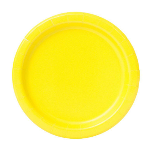 Conjunto de 20 pratos pequenos amarelos neon descartáveis para qualquer tipo de festa.
