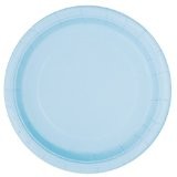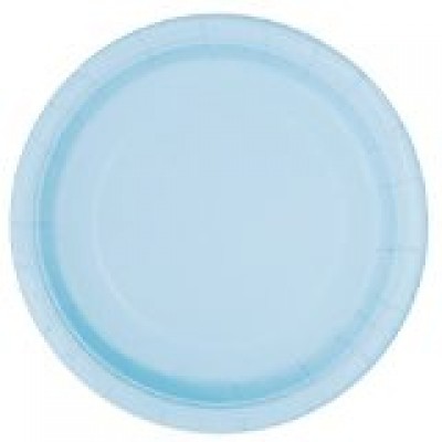 Conjunto de 20 pratos pequenos descartáveis em azul claro ou bebé para qualquer tipo de festa.
