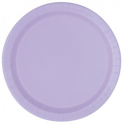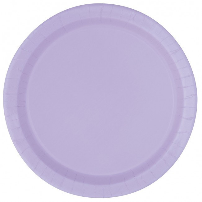 Conjunto de 20 pratos descartáveis na cor Lavanda para qualquer tipo de festa.
