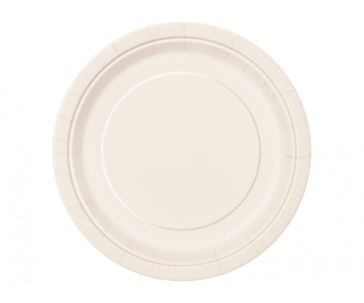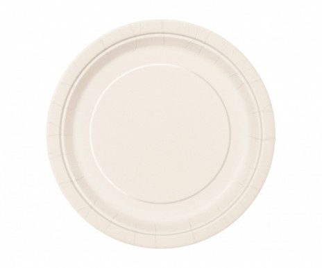 Conjunto de 20 pratos descartáveis em tom Marfim para qualquer tipo de festa.