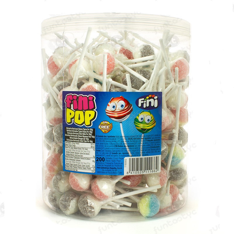 Caixa com 200 chupas ácidos da Fini, em várias cores e sabores, para brindes ou para deliciar os mais pequenos.