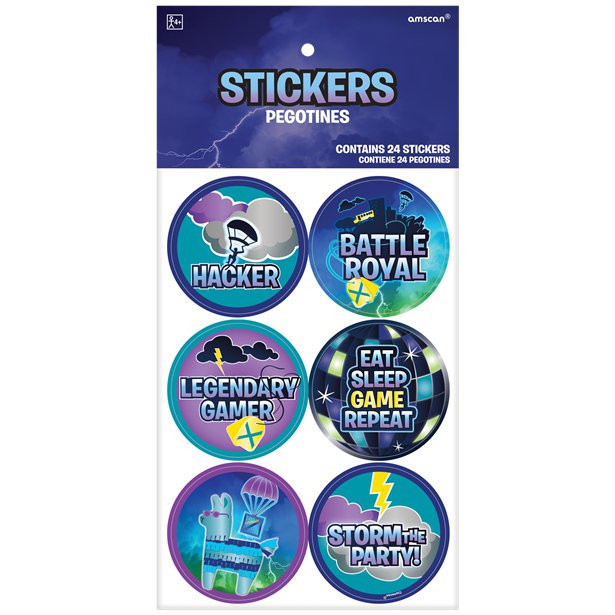 Conjunto de 24 autocolantes do modo de jogo, Battle Royal. Ideal para decorares cadernos, livros, blocos de notas ou sacos brinde na tua festa de aniversário.