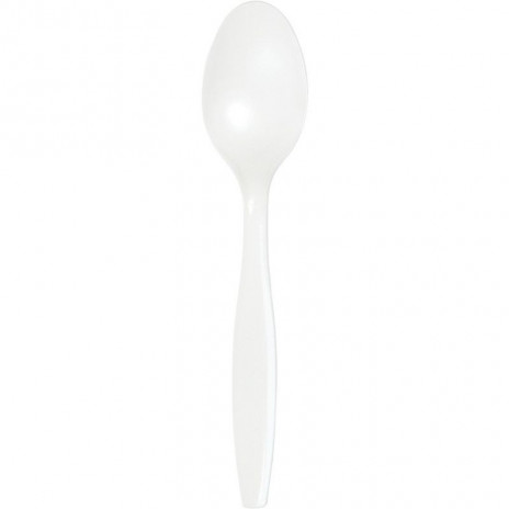 Pack de 24 unidades de colheres de sobremesa de plástico em branco. Ideal para festas aniversário e outros eventos.