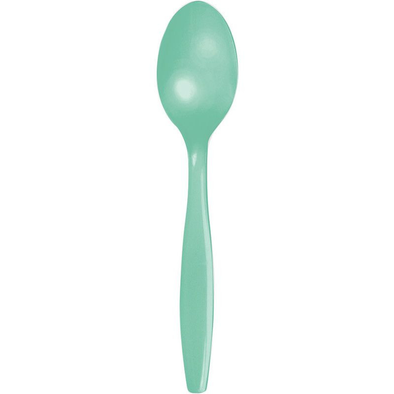 Pack de 24 unidades de colheres de sobremesa de plástico em menta. Ideal para festas aniversário e outros eventos.