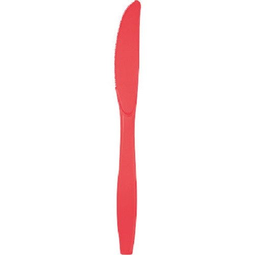 Pack de 24 unidades de facas de plástico em coral. Ideal para festas aniversário e outros eventos.
