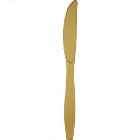 Pack de 24 unidades de facas de plástico em dourado. Ideal para festas aniversário e outros eventos.