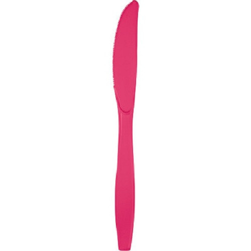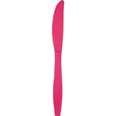 Pack de 24 unidades de facas de plástico em rosa fúscia. Ideal para festas aniversário e outros eventos.