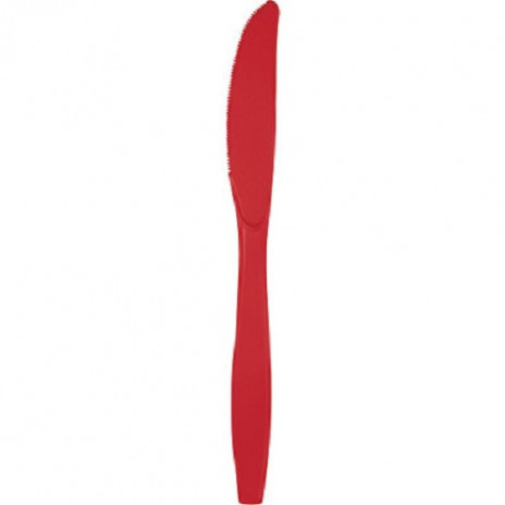 Pack de 24 unidades de facas de plástico em vermelho. Ideal para festas aniversário e outros eventos.