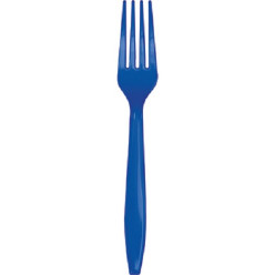 Pack de 24 unidades de garfos de plástico em azul cobalto. Ideal para festas aniversário e outros eventos.