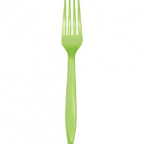 Pack de 24 unidades de garfos de plástico em verde lima. Ideal para festas aniversário e outros eventos.