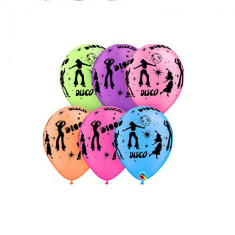 Embalagem com 25 balões de latex ideiais para o tema dos anos 70 disco fever.
