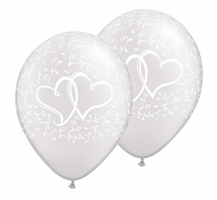 Saco de 25 balões de latex em pérola com corações estilizados da Qualatex. Ideal para decorar qualquer evento, como por exemplo casamentos.
