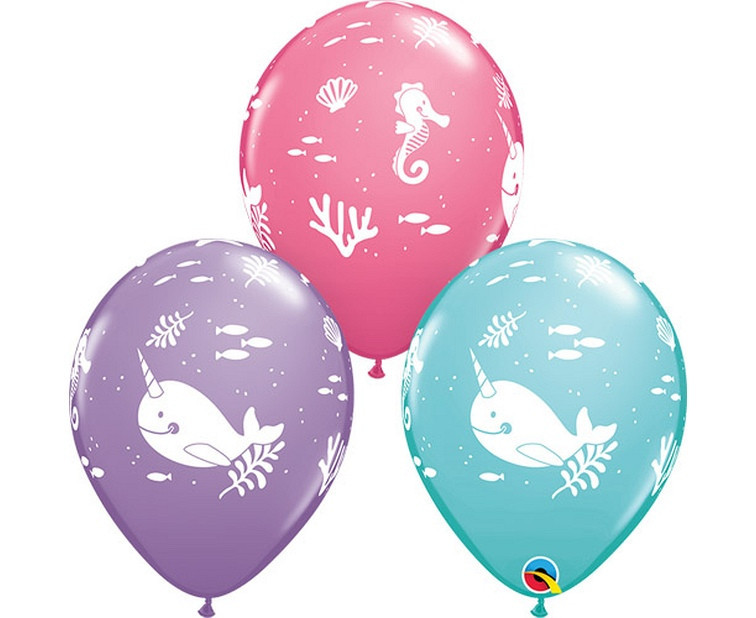 Embalagem com 25 balões de latex ideiais para o tema das sereias e do mar.