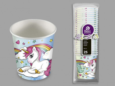 Conjunto de 25 copos de papel para festas de aniversário com o tema Unicórnio.