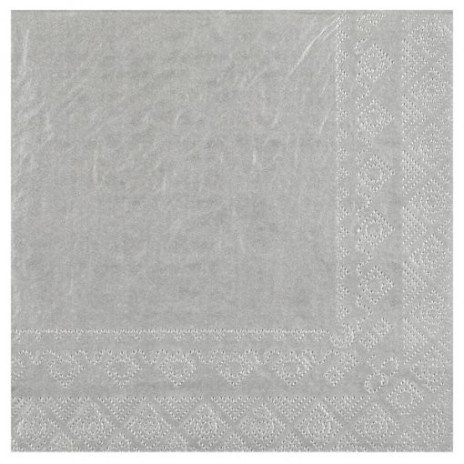 Pack de 25 guardanapos de papel folha dupla em prateado para decoração de qualquer festa ou evento.
