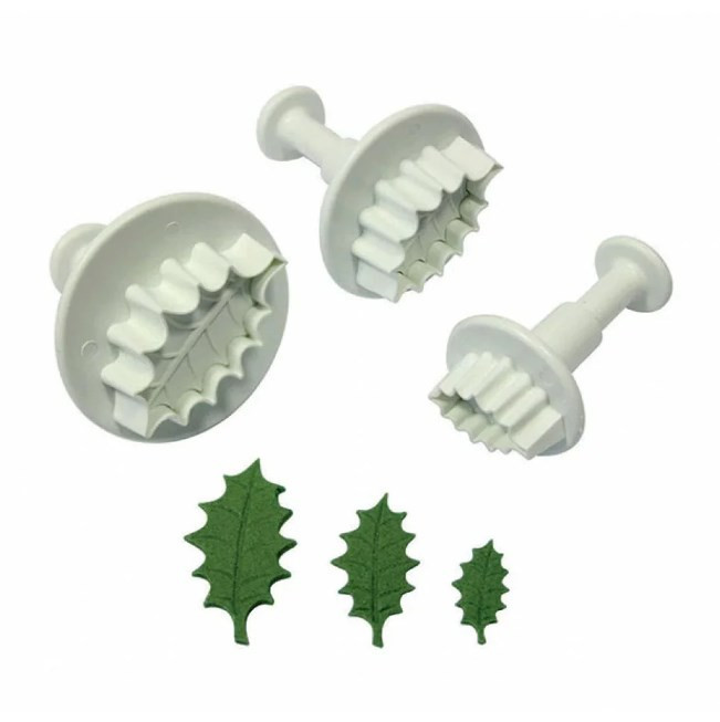 Este cortador de folha de azevinho com veias e êmbolo é ideal para uso com uma ampla variedade de materiais comestíveis e não comestíveis,