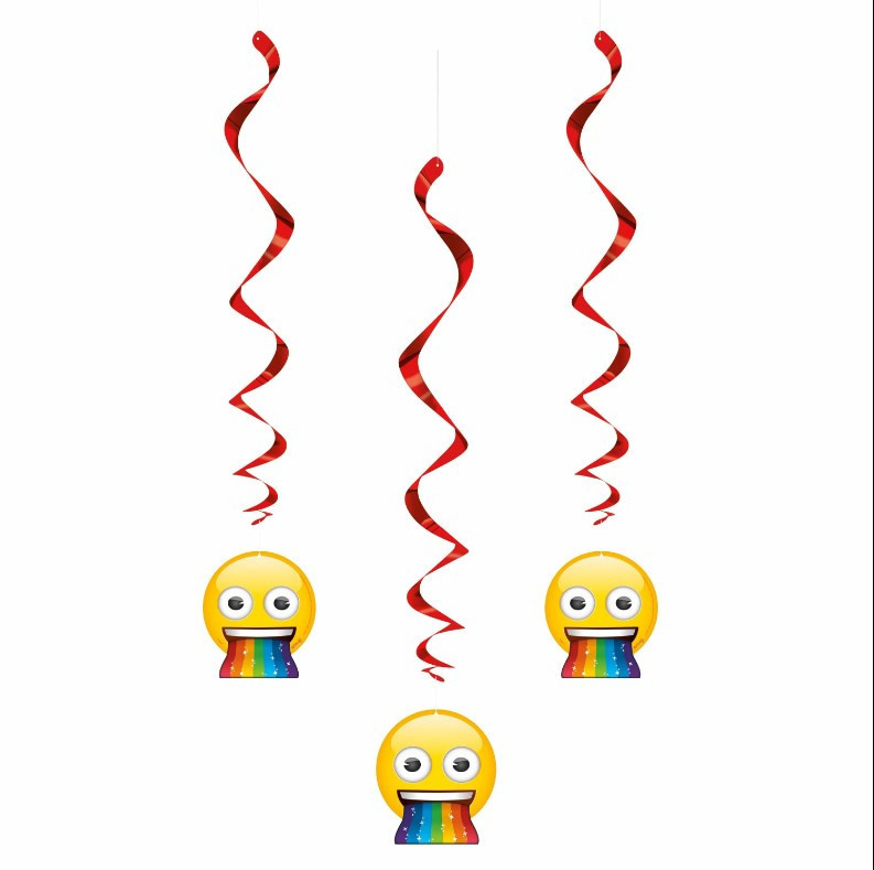 Embalagem de 3 espirais decorativas com imagens dos Emojis, para a decoração das festas de aniversário.