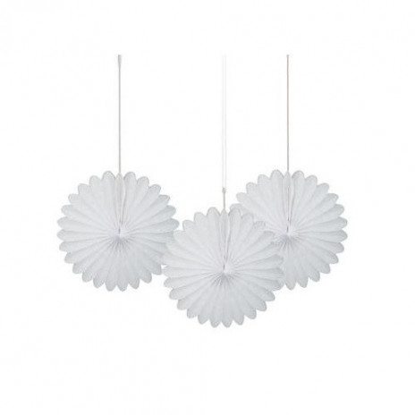 Pack de 3 Mini-Flor de papel seda de cor branca, de 15 cm de diâmetro.