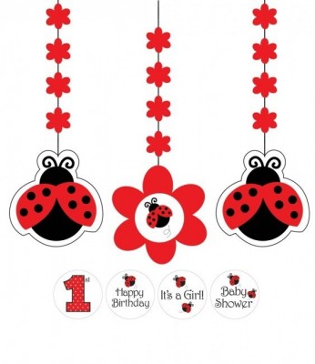 Pack de 3 recortes decorativos para pendurar, da festa Joaninha