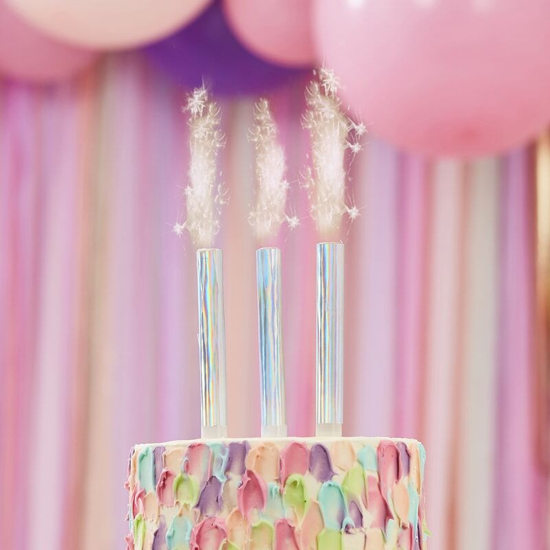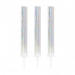 Conjunto de 3 velas sparkler foguete para bolo de aniversário em iridescente. Este conjunto adiciona um toque especial a qualquer comemoração de aniversário.