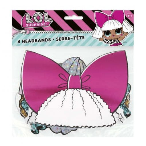 Pack de 4 bandoletes em cartão, com elástico com várias personagens das bonequinhas das LOL Surprise.