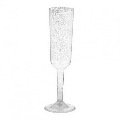 Conjunto de 4 copos flutes para champanhe/espumante em transparente com glitter prateado apropriado para qualquer momento de festejo, como por exemplo a passagem de ano.