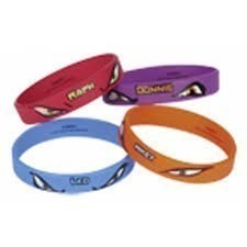 Ideal para oferecer a todos os convidados da tua festa de anos ou simplesmente para teu uso diário este conjunto de 4 pulseiras em borracha altamente resistente com as cores das 4 tartarugas mais mediáticas do planeta, as Tartarugas Ninja.