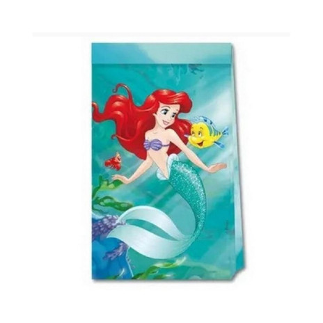 Conjunto de 4 sacos de papel da Ariel, A Pequena Sereia da Disney para oferecer brindes e doces aos teus convidados na tua festa de aniversário.