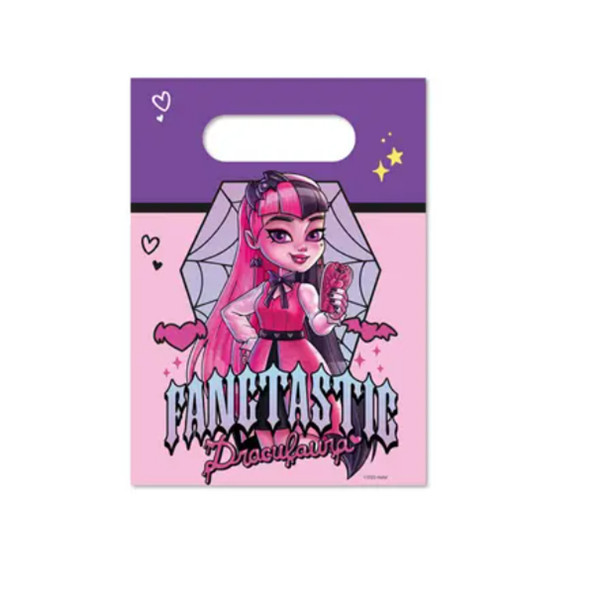 Conjunto de 4 sacos de papel das Monster High para oferecer brindes e doces aos teus convidados na tua festa de aniversário.