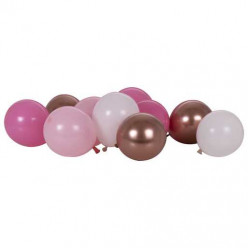 Este pack de balões de 5 polegadas funciona perfeitamente nos stands de decoração de balões. Este pacote contém 40 balões nas cores rose gold chrome, branco e blush.