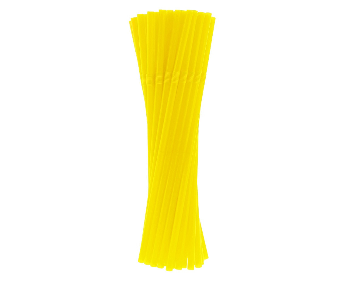 Pack de 40 palhinhas flexíveis de plástico em amarelo.