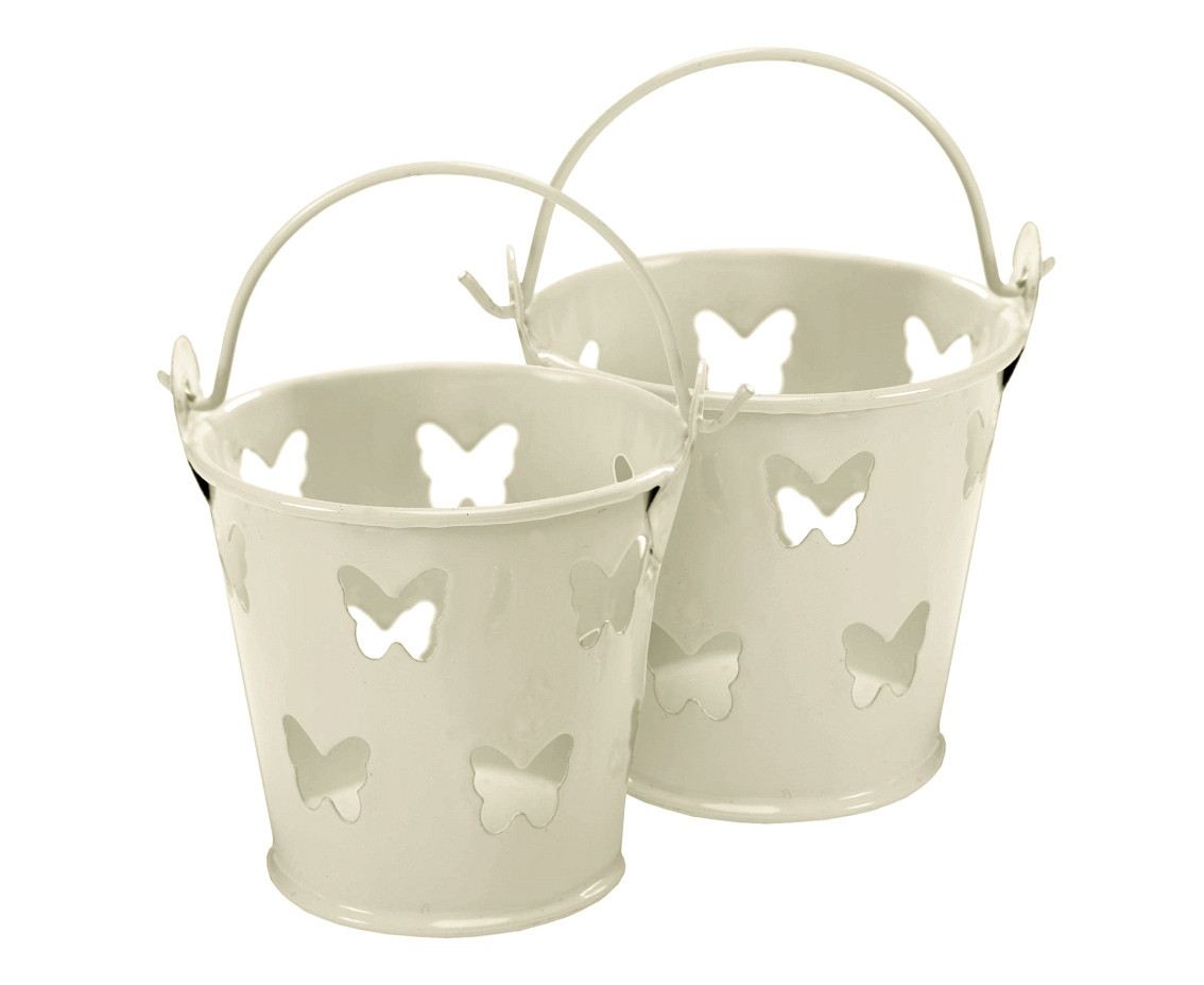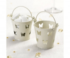 Conjunto de 5 baldes decorativos de borboletas na cor marfim, ideal para decorar a sua festa e qualquer outro evento importante, como casamento e batizado. Pode também colocar brindes e doces no seu interior.