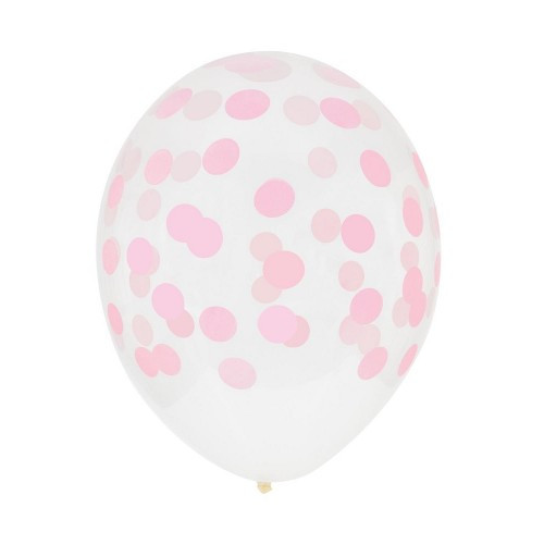 Conjunto de 5 balões transparentes de latex com confettis em cor de rosa para colorir a sua festa ou evento especial.