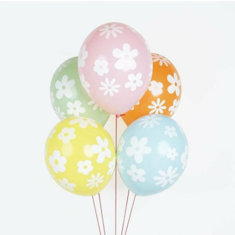 Conjunto de 5 balões de latex com o tema margaridas com 30cm de diâmetro. Pode encher com hélio ou ar.